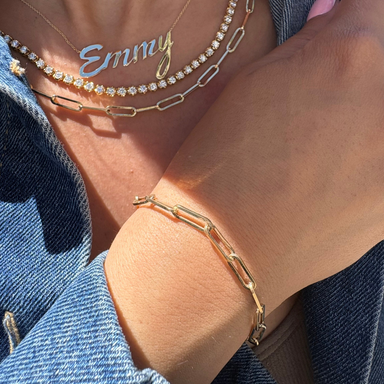 View full detailsDetails Elevate your style with this stunning and luxurious Chunky Diamond Link Bracelet! Delicately hand crafted with diamond pave detailing, this...