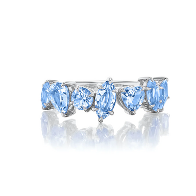 Details Indulge in unparalleled brilliance with this exquisite multi-shaped blue sapphire eternity ring! Accented with a stunning arrangement of g...