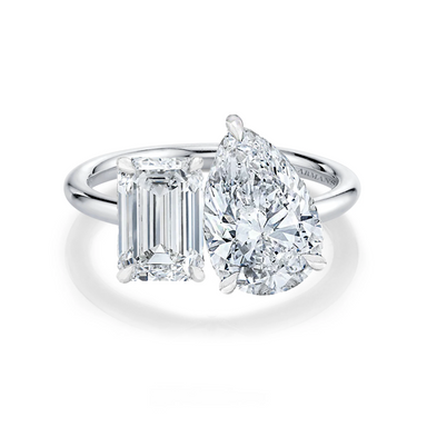 View full detailsDetails Two stone engagement ring featuring a pear cut diamond in a three-prong setting and an emerald cut diamond in a four-prong setting. Carat...