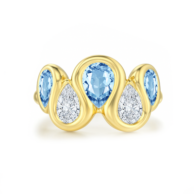Multi Pear Bezel Aquamarine Sapphire Engagement Ring