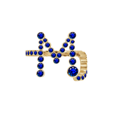 View full detailsDetails Make a statement with our Blue Sapphire Bubble Initial Ring, where sophistication meets fun. Brilliant round-cut sapphires dance together i...