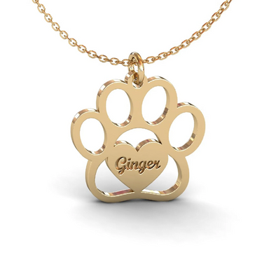 Details Adorn yourself with a timeless reminder of your beloved pet. This gleaming, solid gold paw print necklace with a heart in the middle is per...