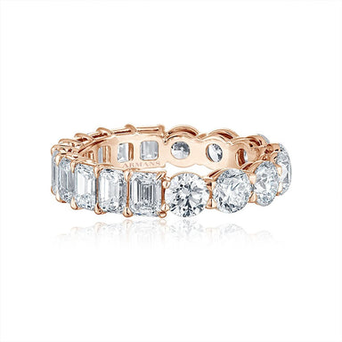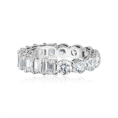 View full detailsDetails Eternity ring with mixed diamonds including round, emerald cut diamonds in a four-prong setting. Total carat weight: 4.50ct Metals Ava...