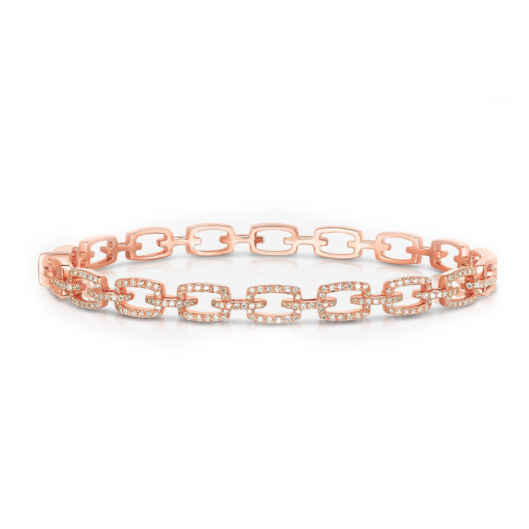 - Diamond chain link bracelet set with round brilliant cut pavé diamonds