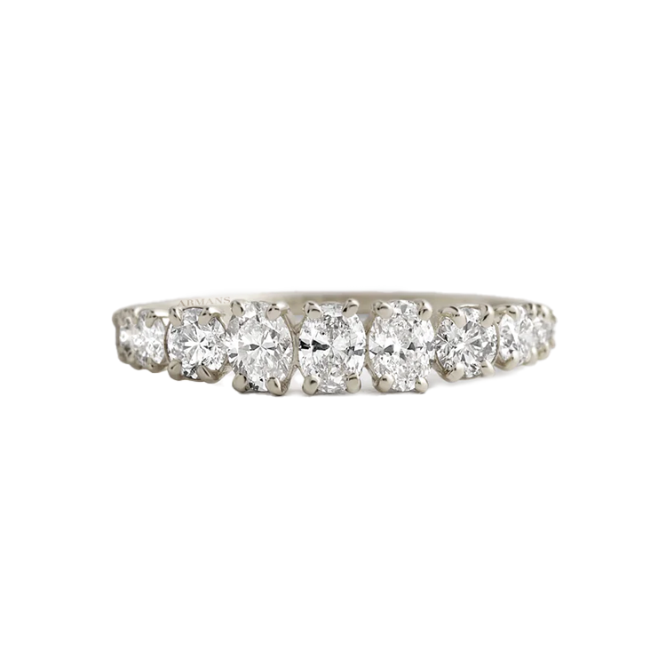 Indulge in the grace of oval cut diamonds and the brilliance of classic round cuts with our elegant Emilia Diamond Eternity Band. This band is not only a symbol of everlasting commitment, but also brings sophistication and enduring love to your style.