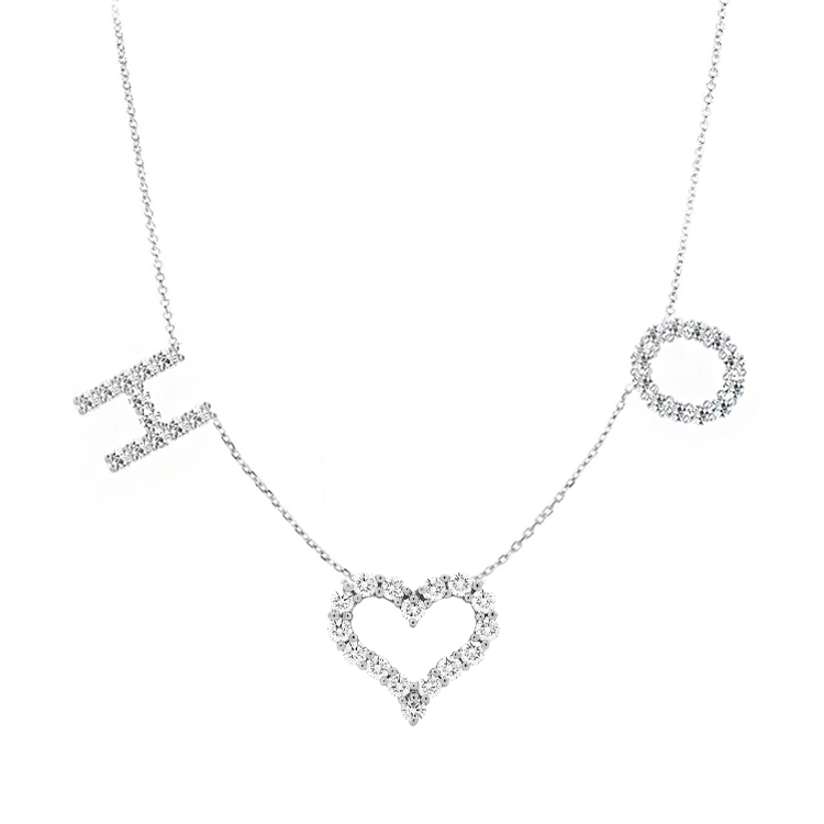 This exquisite diamond multi initial heart necklace is the ultimate present for any momentous event. Boasting two glittering floating diamond initials divided by a breathtaking open diamond heart, this necklace is bound to leave a lasting impact. Demonstrate to your loved one that they hold the key to your heart with this stunning piece of jewellery.