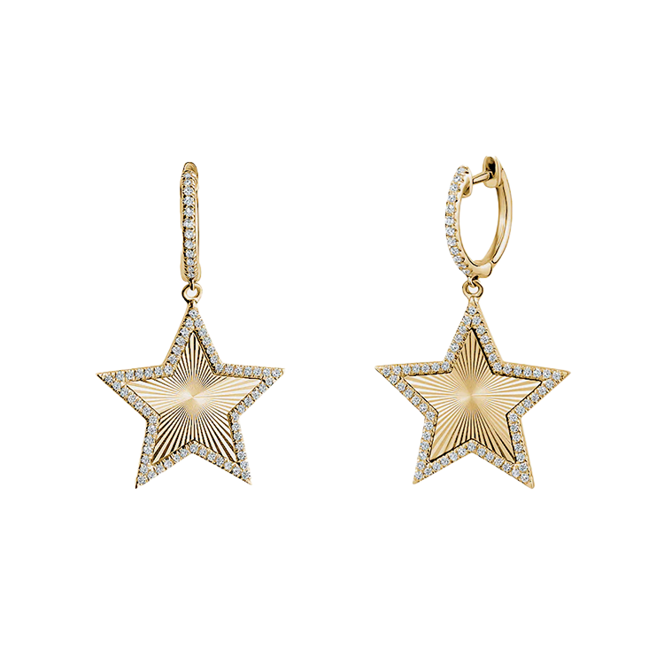 Add a touch of celestial elegance to your look with our Fluted Diamond Star Huggies. The dangling solid gold star, accented with sparkling pavé diamonds, will make you shine like a star! Perfect for any occasion, these huggie earrings are a must-have for any jewellery collection.