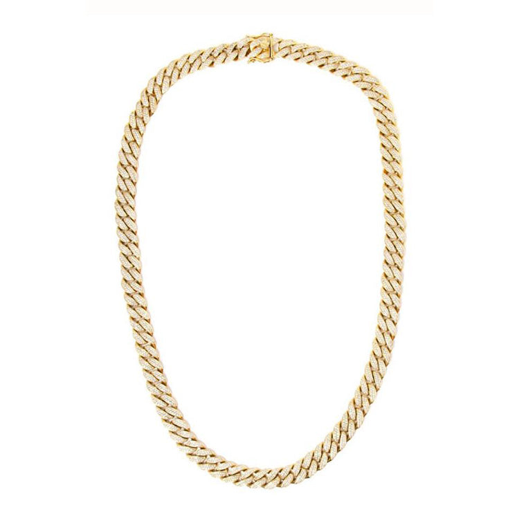 - Men's Cuban chain link diamond necklace set with round brilliant cut pavé diamonds.