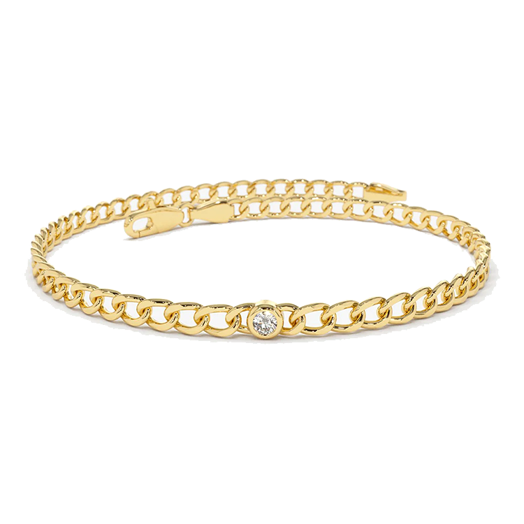This stunning bracelet for her is crafted with solid gold and features a classic cuban link design. Choose from 1, 3, or 5 dazzling bezel set diamonds to add a touch of luxury to your everyday look. Elevate your style and make a statement with this timeless and versatile piece.