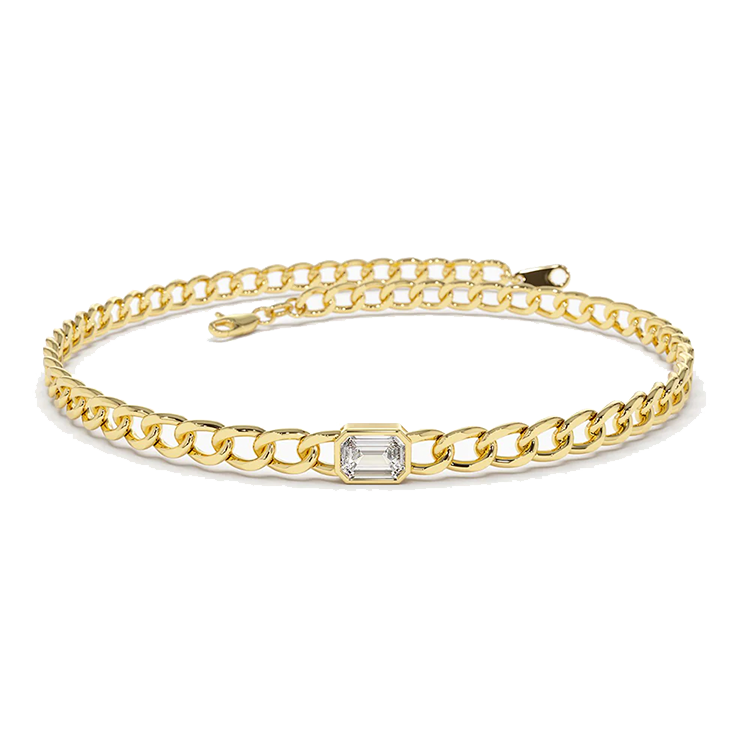 Elevate your style with our stunning Link Bracelet. Crafted with a solid gold cuban chain link design, this bracelet boasts a captivating bezel set emerald cut diamond at its centre. Perfect for any occasion, our bracelet effortlessly combines elegance and luxury. You won't want to take it off!