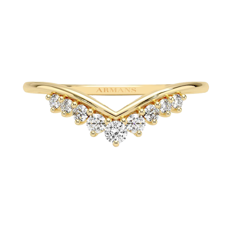 Experience the captivating charm of our exquisite Royal Wishbone Diamond Ring, a stunning fusion of sophistication and grace. Inspired by an inverted princess crown, this ring features a delicate wishbone shape adorned with nine brilliant round cut diamonds, each elegantly secured in a three prong setting. Perfect for those who cherish timeless beauty and distinctive design.