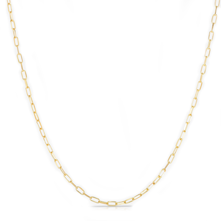 Enhance your style with our Paper Clip Chain Link Necklace! Choose from mini, small, or medium sizes for your perfect fit. The eye-catching paperclip chain can be worn on its own or layered with other necklaces for a standout look. Elevate your accessory game and make a statement with this versatile piece.