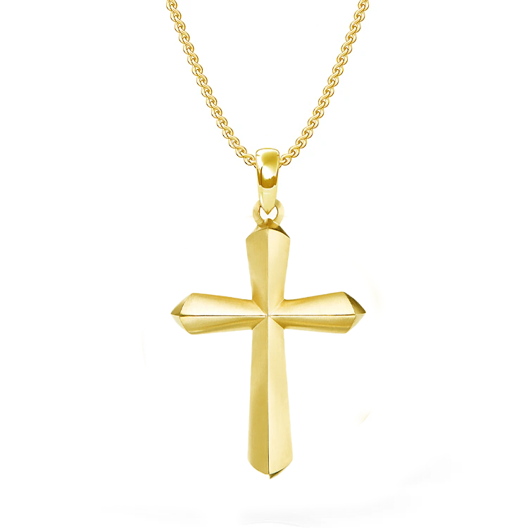 Embrace timeless elegance with our Solid Gold Roman Cross Necklace. This exquisite piece features a meticulously crafted Roman cross pendant in solid gold, symbolising faith, strength, and eternal love. Its unique design seamlessly blends sophistication with spiritual significance, making it a meaningful accessory for daily wear or special occasions. Celebrate your faith with a necklace that beautifully represents your beliefs.