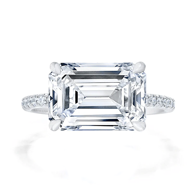 Uniquely gorgeous, the Martha 2.0 Lab Grown Engagement Ring showcases a stunning side emerald cut lab grown diamond, securely set in a four-prong setting atop a delicate pavé melee round brilliant lab grown diamond band. Make a grand statement with this timeless and sustainable ring!